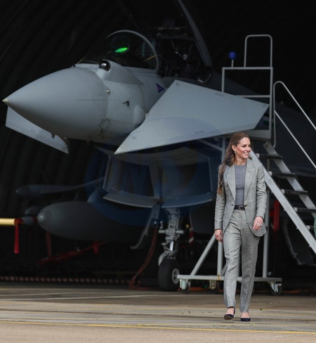 02/10/2025. Coningsby, UK. The Princess of Wales, Royal Honorary Air Commodore, RAF Coningsby during her first visit to the station. Her Royal Highness received an overview of the work of RAF Coningsby on recent operations, including overseas operations to Poland in support of NATO. Her Royal Highness then met a cross-section of Quick Reaction Alert (QRA) personnel and viewed a Quick Reaction Alert Typhoon aircraft. Finally, Her Royal Highness visited a communal space called the ‘Lounge' where The Princess engaged with members of RAF Coningsby's Welfare Team, and a cross-section of RAF Coningsby personnel including aviators from Junior Ranks, to hear about their roles and experiences on site., Credit:Pete Maclaine / Avalon