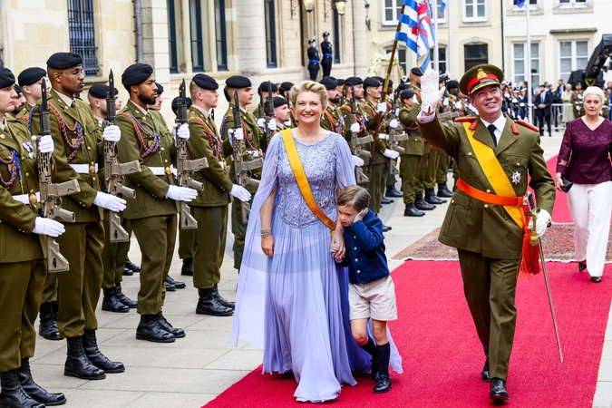 Luxemburg, The Netherlands, 2025-10-03 11:47:31LUXEMBOURG, 03-10-2025, Abdication of His Royal Highness Grand Duke Henri and the installation of His Royal Highness Hereditary Grand Duke Guillaume PHOTO: NLBeeld/Patrick van EmstIn the photo: Grand Duke Guillaume of Luxembourg and Duchess Stéphanie with their son Prince Léopold of Nassau, Credit:Avalon