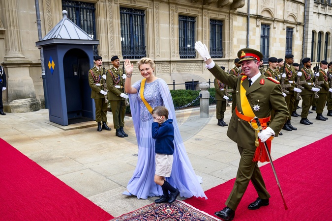Luxemburg, The Netherlands, 2025-10-03 11:47:37LUXEMBOURG, 03-10-2025, Abdication of His Royal Highness Grand Duke Henri and the installation of His Royal Highness Hereditary Grand Duke Guillaume PHOTO: NLBeeld/Patrick van EmstIn the photo: Grand Duke Guillaume of Luxembourg and Duchess Stéphanie with their son Prince Léopold of Nassau, Credit:Avalon