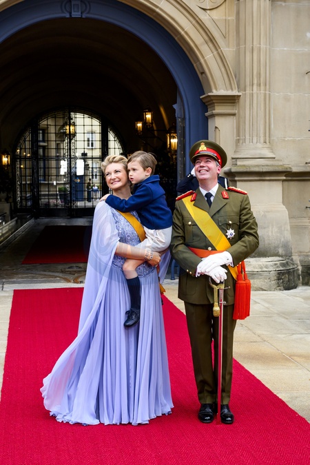 Luxemburg, The Netherlands, 2025-10-03 11:48:00LUXEMBOURG, 03-10-2025, Abdication of His Royal Highness Grand Duke Henri and the installation of His Royal Highness Hereditary Grand Duke Guillaume PHOTO: NLBeeld/Patrick van EmstIn the photo: Grand Duke Guillaume of Luxembourg and Duchess Stéphanie with their son Prince Léopold of Nassau, Credit:Avalon