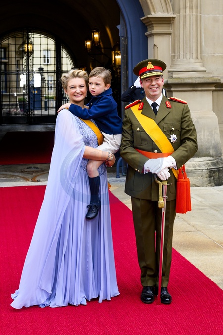 Luxemburg, The Netherlands, 2025-10-03 11:48:04LUXEMBOURG, 03-10-2025, Abdication of His Royal Highness Grand Duke Henri and the installation of His Royal Highness Hereditary Grand Duke Guillaume PHOTO: NLBeeld/Patrick van EmstIn the photo: Grand Duke Guillaume of Luxembourg and Duchess Stéphanie with their son Prince Léopold of Nassau, Credit:Avalon