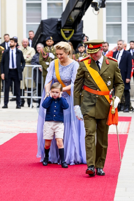 Luxemburg, The Netherlands, 2025-10-03 11:47:00LUXEMBOURG, 03-10-2025, Abdication of His Royal Highness Grand Duke Henri and the installation of His Royal Highness Hereditary Grand Duke Guillaume PHOTO: NLBeeld/Patrick van EmstIn the photo: Grand Duke Guillaume of Luxembourg and Duchess Stéphanie with their son Prince Léopold of Nassau, Credit:Avalon
