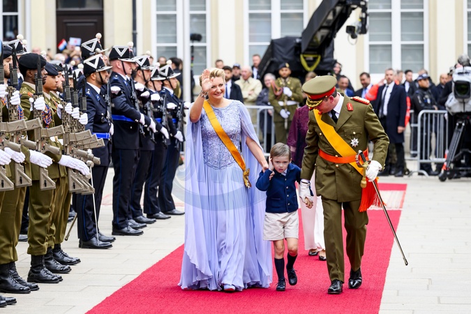 Luxemburg, The Netherlands, 2025-10-03 11:47:04LUXEMBOURG, 03-10-2025, Abdication of His Royal Highness Grand Duke Henri and the installation of His Royal Highness Hereditary Grand Duke Guillaume PHOTO: NLBeeld/Patrick van EmstIn the photo: Grand Duke Guillaume of Luxembourg and Duchess Stéphanie with their son Prince Léopold of Nassau, Credit:Avalon