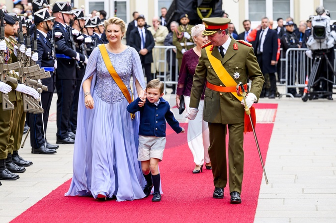 Luxemburg, The Netherlands, 2025-10-03 11:47:06LUXEMBOURG, 03-10-2025, Abdication of His Royal Highness Grand Duke Henri and the installation of His Royal Highness Hereditary Grand Duke Guillaume PHOTO: NLBeeld/Patrick van EmstIn the photo: Grand Duke Guillaume of Luxembourg and Duchess Stéphanie with their son Prince Léopold of Nassau, Credit:Avalon