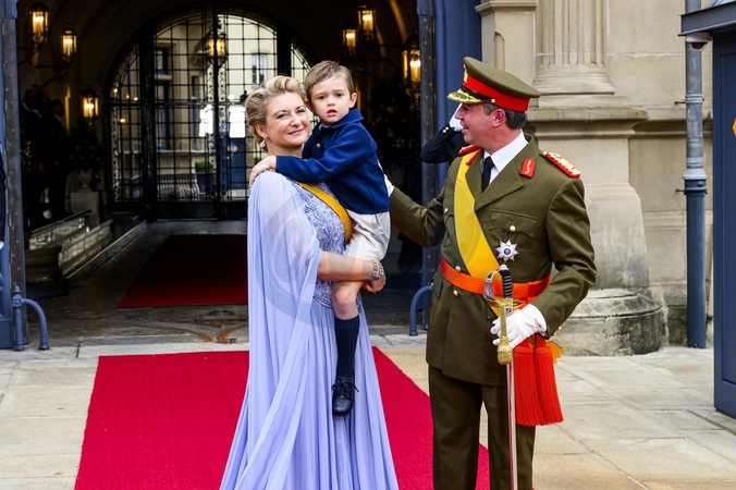 Luxemburg, The Netherlands, 2025-10-03 11:47:53LUXEMBOURG, 03-10-2025, Abdication of His Royal Highness Grand Duke Henri and the installation of His Royal Highness Hereditary Grand Duke Guillaume PHOTO: NLBeeld/Patrick van EmstIn the photo: Grand Duke Guillaume of Luxembourg and Duchess Stéphanie with their son Prince Léopold of Nassau, Credit:Avalon