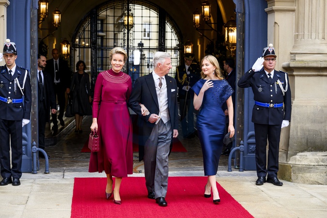 Luxemburg, The Netherlands, 2025-10-03 10:46:55LUXEMBOURG, 03-10-2025, Abdication of His Royal Highness Grand Duke Henri and the installation of His Royal Highness Hereditary Grand Duke Guillaume PHOTO: NLBeeld/Patrick van EmstIn the photo: King Philippe of Belgium with Queen Mathilde and Crown Princess Elisabeth, Credit:Avalon