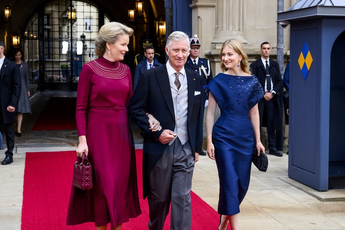 Luxemburg, The Netherlands, 2025-10-03 10:47:01LUXEMBOURG, 03-10-2025, Abdication of His Royal Highness Grand Duke Henri and the installation of His Royal Highness Hereditary Grand Duke Guillaume PHOTO: NLBeeld/Patrick van EmstIn the photo: King Philippe of Belgium with Queen Mathilde and Crown Princess Elisabeth, Credit:Avalon