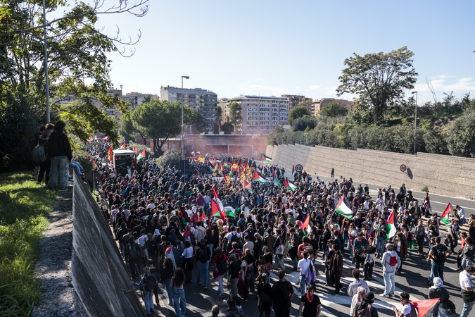 General strike for the Global Sumud Flotilla, demonstration by CGIL and USB. In the photo, protesters occupy the Eastern Ring Road. Rome, Italy 03 Oct 2025, Credit:Cristiano Minichiello / Avalon