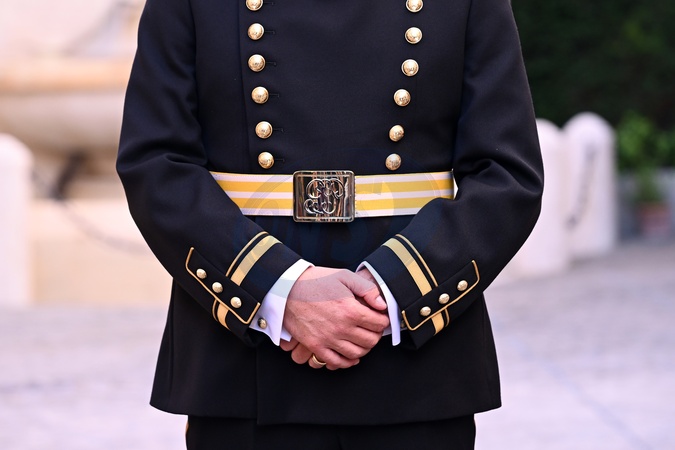 Detail of the updated Swiss Guards representative uniform, called the 'Half Gala' uniform, during its unveiling in the Guest Cellar at the Swiss Guards Corp Barracks in Vatican City, 02 October 2025., Credit:Maria Laura Antonelli / Avalon