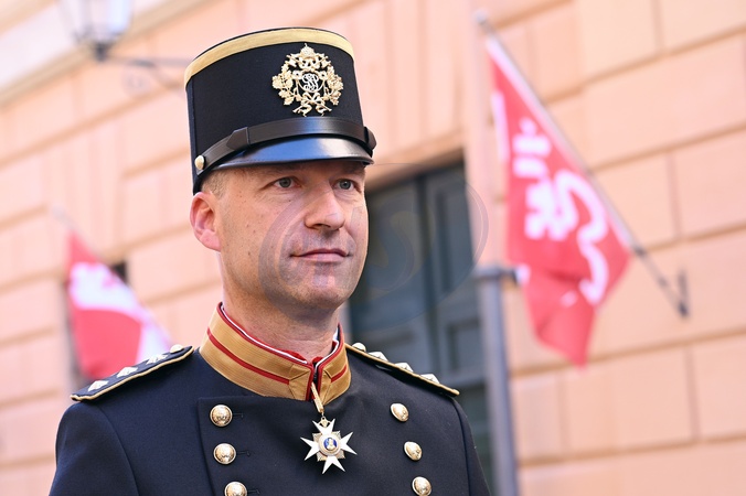 The updated Swiss Guards representative uniform, called the 'Half Gala' uniform, is presented in the Guest Cellar at the Swiss Guards Corp Barracks in Vatican City, 02 October 2025., Credit:Maria Laura Antonelli / Avalon