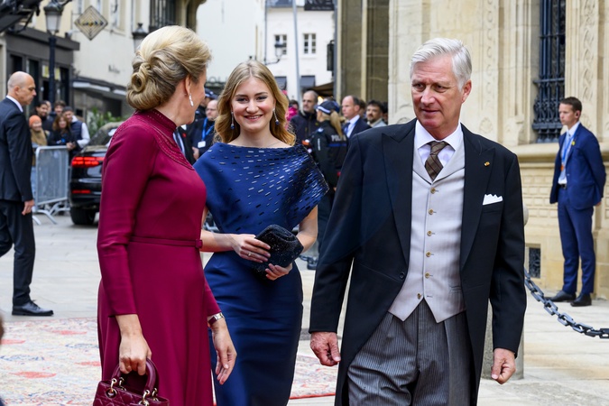 Luxemburg, The Netherlands, 2025-10-03 09:48:53LUXEMBOURG, 03-10-2025, Grand Ducal Palace Abdication of His Royal Highness Grand Duke Henri and the installation of His Royal Highness Hereditary Grand Duke Guillaume PHOTO: NLBeeld/Patrick van EmstIn the photo: King Philippe of Belgium with Queen Mathilde and Crown Princess Elisabeth of Belgium, Credit:Avalon