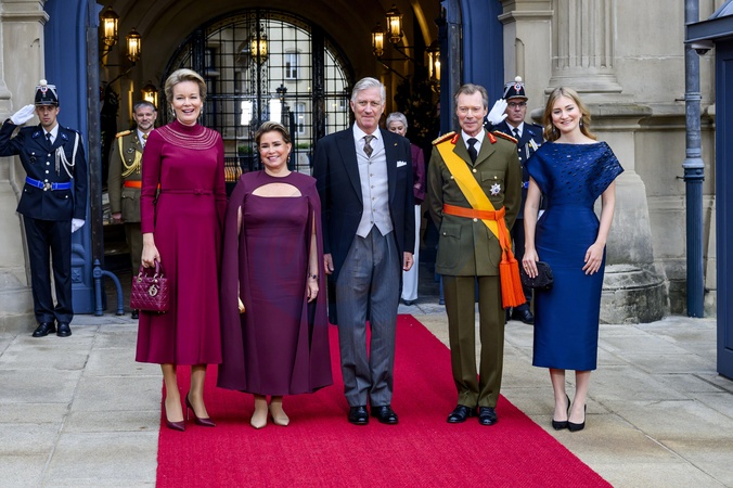Luxemburg, The Netherlands, 2025-10-03 09:49:45LUXEMBOURG, 03-10-2025, Grand Ducal Palace Abdication of His Royal Highness Grand Duke Henri and the installation of His Royal Highness Hereditary Grand Duke Guillaume PHOTO: NLBeeld/Patrick van EmstIn the photo: Grand Duke Henri and Duchess Maria Teresa of Luxembourg with King Philippe of Belgium with Queen Mathilde and Elisabeth of Belgium, Credit:Avalon