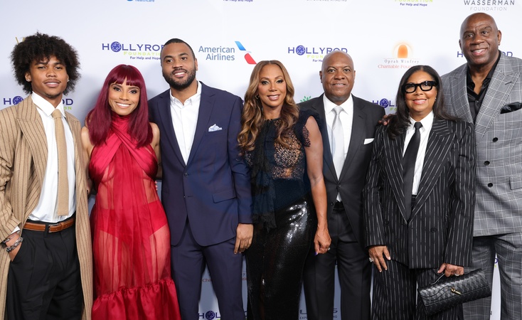 4 October 2025 . Los Angeles, California - Roman Peete, Ryan Peete, RJ Peete Jr., Holly Robinson Peete, Rodney Peete, Cookie Johnson, Magic Johnson At HollyRod Foundation's Annual DesignCare Gala held at NYA EAST in Los Angeles., Credit:Sadou Faye / Avalon