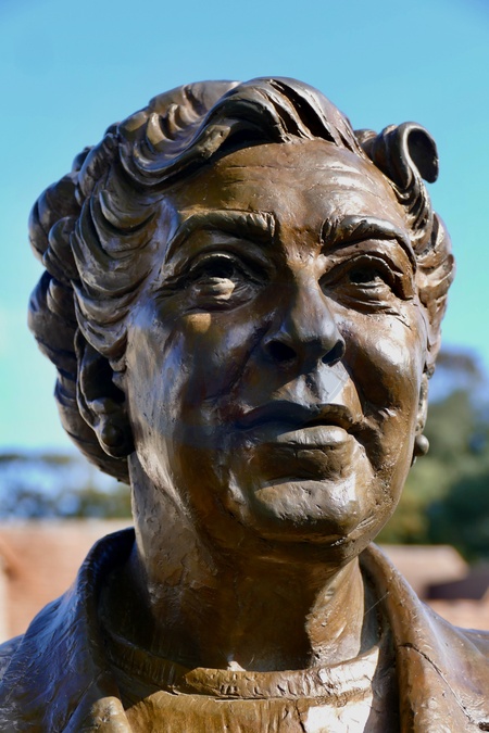 This life-size, bronze statue of Agatha Christie by figurative sculptor Ben Twiston-Davies now sits overlooking the Kinecroft., Credit:Geoffrey Swaine / Avalon