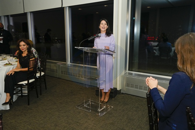 Former German foreign minister Annalena Baerbock and Annalena Baerbock and President of the 80th UN General Assembly during the Annual Meeting of the UNGA Platform of Women Leaders – Working Dinner in the UNHQ Delegates Dining Room, in New York City, Monday, September 22, 2025., Credit:Jennifer Graylock-Graylock.com / Avalon