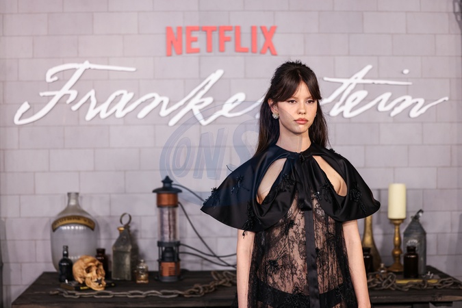 MIRACLE MILE, LOS ANGELES, CALIFORNIA, USA - OCTOBER 06: English actress, producer, and writer Mia Goth wearing Dior with shoes by Paris Texas and jewelry by Tiffany and Co. arrives at the Los Angeles Premiere Of Netflix's 'Frankenstein' held at the Academy Museum of Motion Pictures on October 6, 2025 in Miracle Mile, Los Angeles, California, United States., Credit:Xavier Collin / Avalon