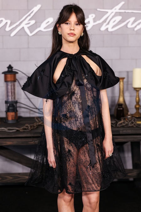MIRACLE MILE, LOS ANGELES, CALIFORNIA, USA - OCTOBER 06: English actress, producer, and writer Mia Goth wearing Dior with shoes by Paris Texas and jewelry by Tiffany and Co. arrives at the Los Angeles Premiere Of Netflix's 'Frankenstein' held at the Academy Museum of Motion Pictures on October 6, 2025 in Miracle Mile, Los Angeles, California, United States., Credit:Xavier Collin / Avalon