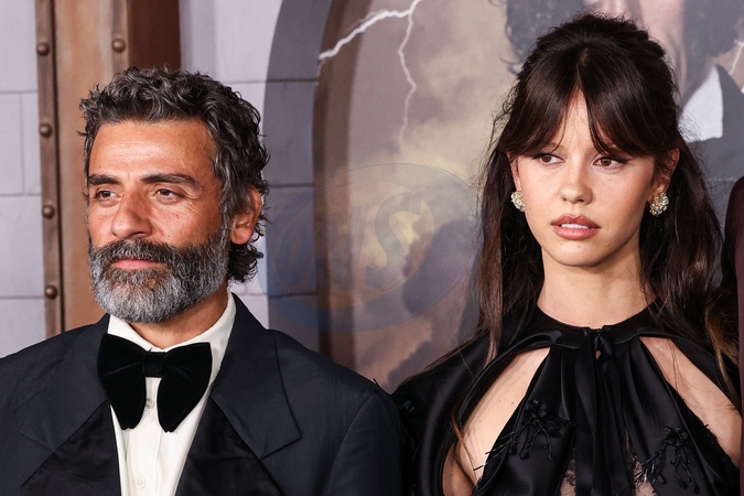MIRACLE MILE, LOS ANGELES, CALIFORNIA, USA - OCTOBER 06: Guatemalan-American actor Oscar Isaac and English actress, producer, and writer Mia Goth wearing Dior with shoes by Paris Texas and jewelry by Tiffany and Co. arrive at the Los Angeles Premiere Of Netflix's 'Frankenstein' held at the Academy Museum of Motion Pictures on October 6, 2025 in Miracle Mile, Los Angeles, California, United States., Credit:Xavier Collin / Avalon