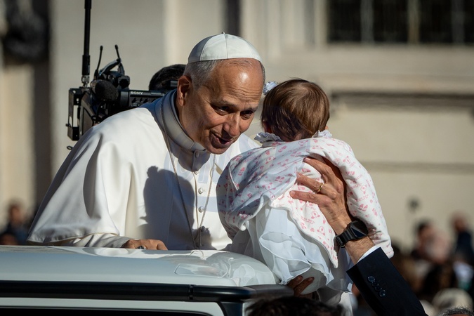 Pope Leo XIV leads his traditional Wednesday General Audience in St. Peter's Square in Vatican City, Vatican, on 15 October 2025.