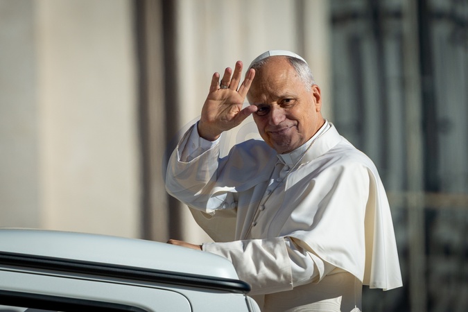 Pope Leo XIV leads his traditional Wednesday General Audience in St. Peter's Square in Vatican City, Vatican, on 15 October 2025.