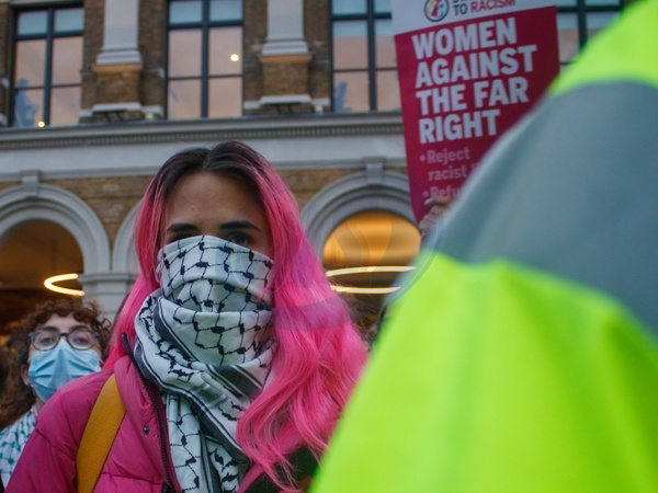 Protesters from Stand Up To Racism and other groups outside of Tower Hamlets Town Hall, London, UK, 8 October 2025, Credit:Alex Day / Avalon