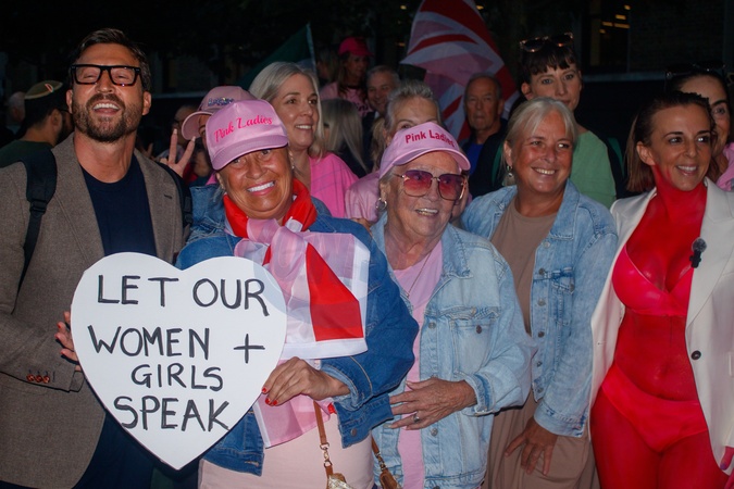 Protesters gather outside of Tower Hamlets Town Hall. They are protesting against the The Pink Ladies and Operation Raise the Colours campaign being labeled as "Far Right Extremists” by the Labour Council, London, UK, 8 October 2025, Credit:Alex Day / Avalon