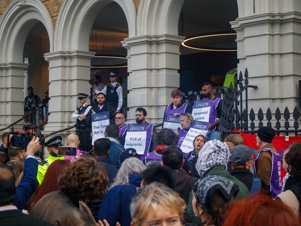 Protesters from Stand Up To Racism and other groups outside of Tower Hamlets Town Hall, London, UK, 8 October 2025, Credit:Alex Day / Avalon