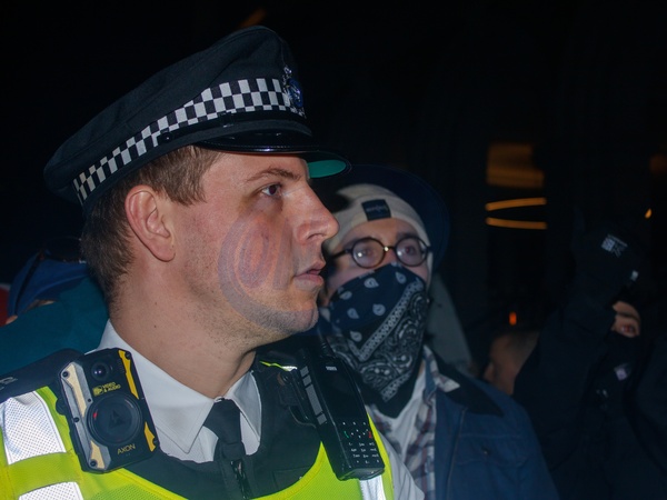 Police at a protest outside of Tower Hamlets Town Hall, London, UK, 8 October 2025, Credit:Alex Day / Avalon