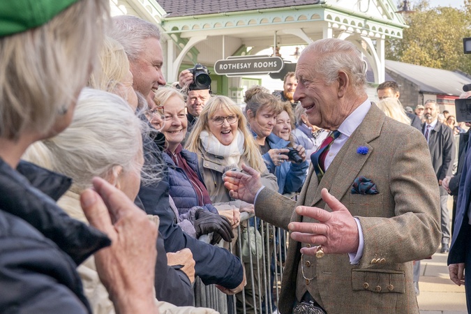 King Charles III meet members of the public during a visit to mark the 150th anniversary of The Albert Hall in Ballater, Aberdeenshire. Picture date: Thursday October 9, 2025., Credit:Avalon.red / Avalon