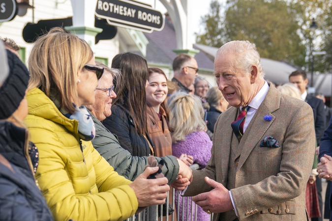 King Charles III meet members of the public during a visit to mark the 150th anniversary of The Albert Hall in Ballater, Aberdeenshire. Picture date: Thursday October 9, 2025., Credit:Avalon.red / Avalon