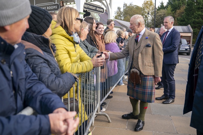 King Charles III meet members of the public during a visit to mark the 150th anniversary of The Albert Hall in Ballater, Aberdeenshire. Picture date: Thursday October 9, 2025., Credit:Avalon.red / Avalon