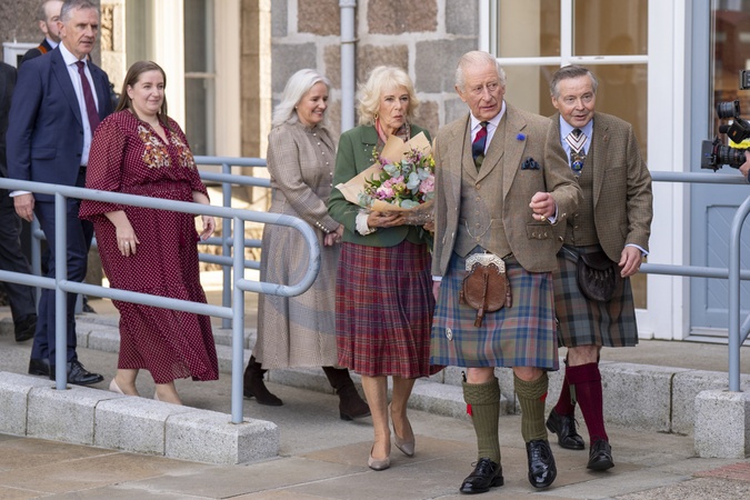King Charles III and Queen Camilla during a visit to mark the 150th anniversary of The Albert Hall in Ballater, Aberdeenshire. Picture date: Thursday October 9, 2025., Credit:Avalon.red / Avalon