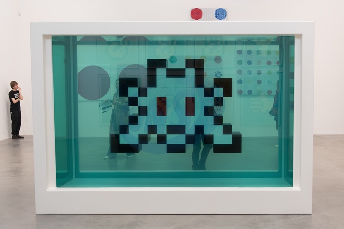 A visitor views 'Secret of The Deep' (2005) by Damien Hirst and Invader at 'Triple Trouble' - an exhibition of new collaborative works by Shepard Fairey, Damien Hirst and Invader at Newport Street Gallery, London, England, UK on Thursday 9 October, 2025., Credit:Justin Ng / Avalon