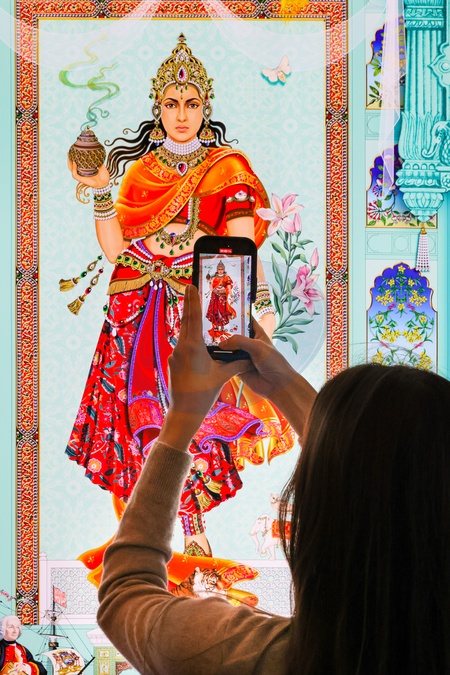 London, UK. 09th Oct 2025. A visitor takes pictures of 'The Golden Bird: Envy of the West', 2025, by the Sign Twins. At the Shirley Sherwood Gallery of Botanical Art, Kew Gardens, new exhibitions recover the lost stories of remarkable artworks and illuminate traditional Indian art. New lightbox works from acclaimed artists The Singh Twins are on display to the public for the first time., Credit:Imageplotter / Avalon