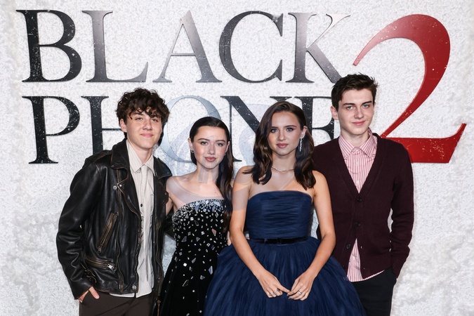 HOLLYWOOD, LOS ANGELES, CALIFORNIA, USA - OCTOBER 08: Aidan McGraw, American actress Violet McGraw, American actress Madeleine McGraw and Jack McGraw arrive at the World Premiere Of Universal Pictures And Blumhouse Productions' 'Black Phone 2' held at the TCL Chinese Theatre IMAX on October 8, 2025 in Hollywood, Los Angeles, California, United States., Credit:Xavier Collin / Avalon