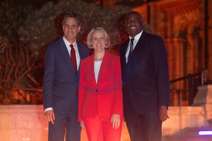 (L-R) - Ed Miliband - Secretary of State for Energy Security and Net Zero, Emma Reynolds - Secretary of State for Environment, Food and Rural Affairs, David Lammy - Deputy Prime Minster and Lord Chancellor and Secretary of State for Justice attends a Pre-COP30 Reception at Natural History Museum, London, England, UK on Thursday 9 October, 2025., Credit:Justin Ng / Avalon