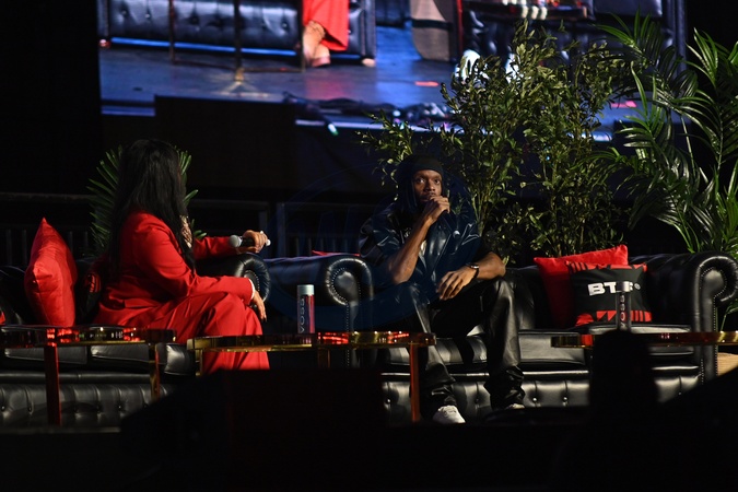 In conversation with Krept (R) and host Charmaine Heydon at BlackTechFest 2025 on 9th October 2025, Drumsheds London, UK, Credit:Thepinkrosephotographyltd / Avalon