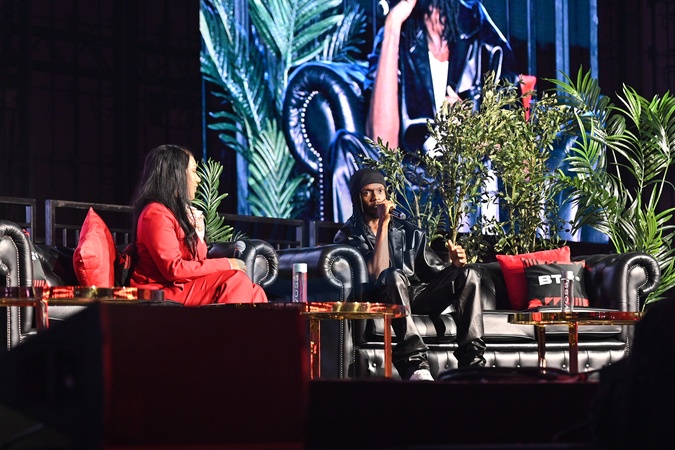 Charmaine Heydon (L) and Krept (R) (co-founder of Nala's Baby) at BlackTechFest 2025 on 9th October 2025, Drumsheds London, UK, Credit:Thepinkrosephotographyltd / Avalon