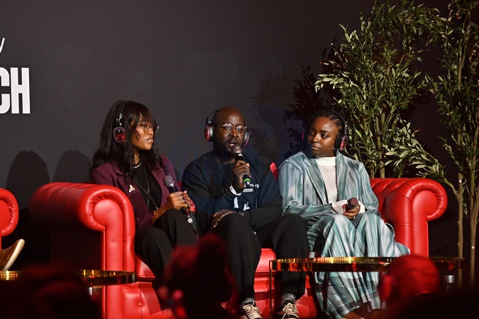 In conversation from ( L to R) Somto Nwododo, Samuel Esilaba and Ope Fajemirokun at BlackTechFest 2025 on 9th October 2025, Drumsheds London, UK, Credit:Thepinkrosephotographyltd / Avalon