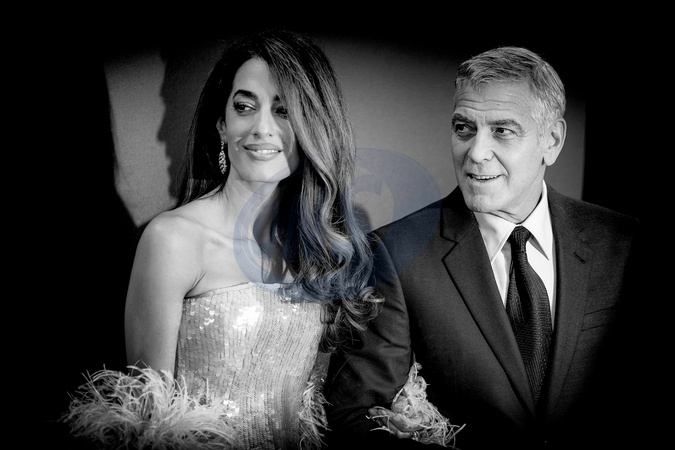 George Clooney and Amal Clooney attends the BFI London Film Festival; the UK premiere of JAY KELLY on Friday 10 October 2025 at Royal Festival Hall, London. Editors Note: Image converted to monochrome., Credit:Julie Edwards / Avalon