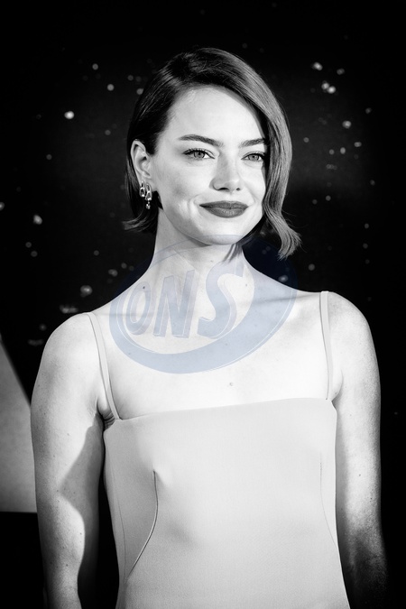 Emma Stone attends the BFI London Film Festival; the UK premiere of BUGONIA on Friday 10 October 2025 at Royal Festival Hall, London. Editors Note: Image converted to monochrome., Credit:Julie Edwards / Avalon
