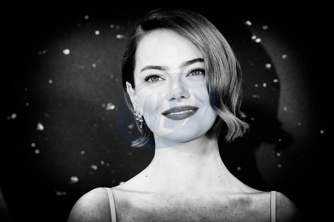 Emma Stone attends the BFI London Film Festival; the UK premiere of BUGONIA on Friday 10 October 2025 at Royal Festival Hall, London. Editors Note: Image converted to monochrome., Credit:Julie Edwards / Avalon