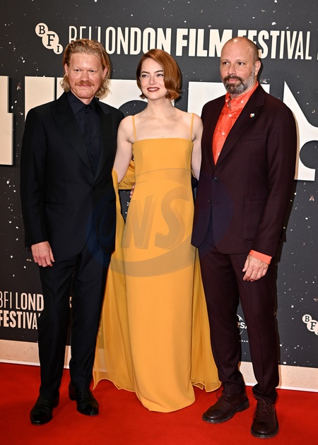 Jesse Plemons, Emma Stone, Yorgos Lanthimos attends ‘Bugonia' - UK Premiere during the BFI London Film Festival, at the Southbank Centre, Royal Festival Hall in London, England. UK. Friday 10th October 2025, Credit:James Warren / Avalon