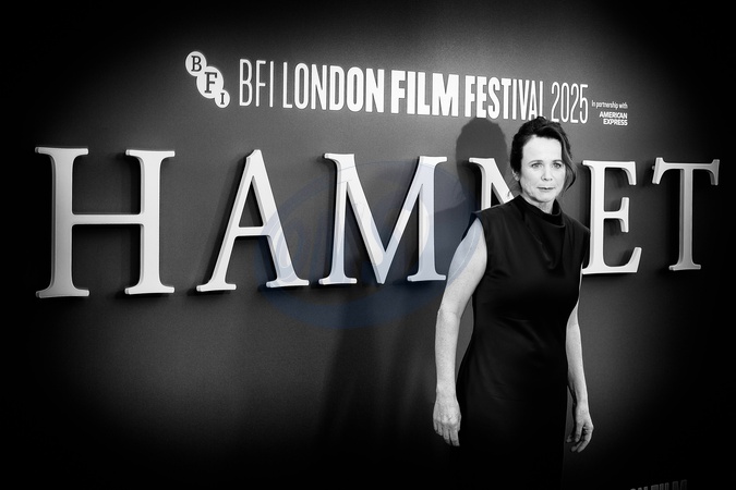 Emily Watson attends the BFI London Film Festival; the UK premiere of HAMNET on Saturday 11 October 2025 at Royal Festival Hall, London. Editors Note: Image converted to monochrome., Credit:Julie Edwards / Avalon