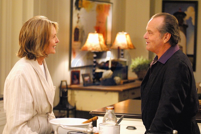 2003's 'Something's Gotta Give'. Harry Langer (Jack Nicholson) is an aged music industry exec with a fondness for younger women like Marin (Amanda Peet), his latest trophy girlfriend. Things get a little awkward when Harry suffers a heart attack at the home of Marin's mother Erica (Diane Keaton). Left in the care of Erica and his doctor (Keanu Reeves), a love triangle starts to take shape.Supplied by BWP Media., Credit:Avalon