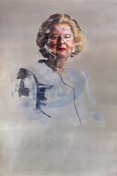 Striking portraits of the late Baroness Margaret Thatcher by Lorna May Wadsworth are going on display at Noho Studios in London, commemorating the centenary of the former British Prime Minister's birth in 1925. The exhibition features a monumental, never previously displayed portrait of Mrs Thatcher, In Memoriam, alongside a series titled The Legacy Paintings, comprising of seven four-foot paintings which together explore her impact on UK politics and how she is regarded today, through Warholian repetition., Credit:Lorna May Wadsworth / Avalon