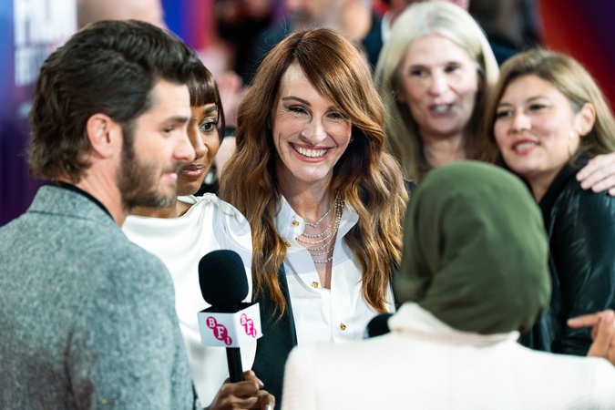 (L-R) Andrew Garfield, Ayo Edebiri, and Julia Roberts attend the "After the Hunt" Headline Gala at the 69th BFI London Film Festival at The Royal Festival Hall, Credit:lounis Tiar / Avalon