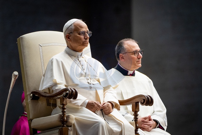 Pope Leo XIV presides over a Rosary vigil for peace in St. Peter's Square in Vatican City, Vatican, on 11 October 2025.