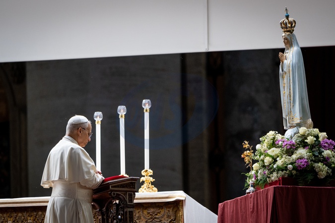 Pope Leo XIV presides over a Rosary vigil for peace in St. Peter's Square in Vatican City, Vatican, on 11 October 2025.