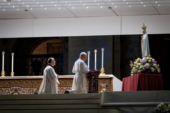 Pope Leo XIV presides over a Rosary vigil for peace on the 63rd anniversary of the start of the Second Vatican Council in St. Peter's Square in Vatican City, Vatican, on 11 October 2025., Credit:Stefano Costantino TTL / Avalon